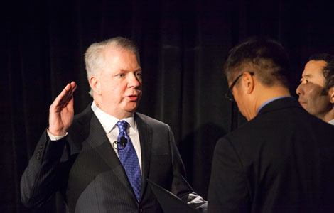 An anti-government protester blows a whistle and uses a clapper at a rally on Silom road in central Bangkok January 6, 2014. Thailand is heading for a political showdown as protesters plan to shut down Bangkok next week to sabotage an election while the government's supporters have vowed to stage massive counter-rallies in the country's provinces. [Photo/Agencies]