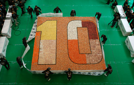 Turkey's Prime Minister Tayyip Erdogan (rear, L) and Singapore's Prime Minister Lee Hsien Loong (rear, R) look on as Singapore's ambassador to Turkey Chandra Das (R) exchanges documents with Turkey's ambassador to Singapore Hakki Taner Seben, during a signing of a memorandum of understanding (MOU) for counter-terrorism cooperation at the Istana in Singapore Jan 9, 2014. [Photo/Agencies]