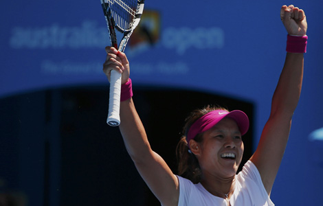MELBOURNE, Jan. 21 (Xinhua) -- Two-time runner-up and fourth seed Li Na of China beat Italian Flavia Pennetta with an impressive 6-2, 6-2 victory in Tuesday's quarterfinals at the Australian Open.