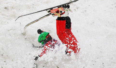 Love was certainly in the air for these couples as they found a hair-raising way to celebrate Valentines Day - a NAKED bungee jump. The nine couples headed to Sigulda, Latvia where they stripped off and hurled themselves from a cable car. Despite the harsh winter weather, the loved up adrenaline junkies performed the jump over the frozen river Gauja, wearing little more than a g-string and a safety harness. And if the jump wasnt brave enough, the lovers had to stay in their birthday suits for 15 minutes before the jump. [Photo/icpress.cn]
