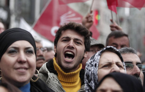 A Hindu holy man, or sadhu, peels an apple at the premises of Pashupatinath Temple during the Shivaratri festival in Kathmandu February 27, 2014. Hindu holy men from Nepal and India come to this temple to take part in the Shivaratri festival. Celebrated by Hindu devotees all over the world, Shivaratri is dedicated to Lord Shiva, and holy men mark the occasion by praying, smoking marijuana or smearing their bodies with ashes. [Photo/Agencies]