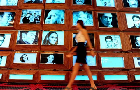 Visitors take pictures in front of “lemons” during an exhibition in Shanghai, Aug 14, 2014.[Photo by Lai Xinlin/Asianewsphoto] |