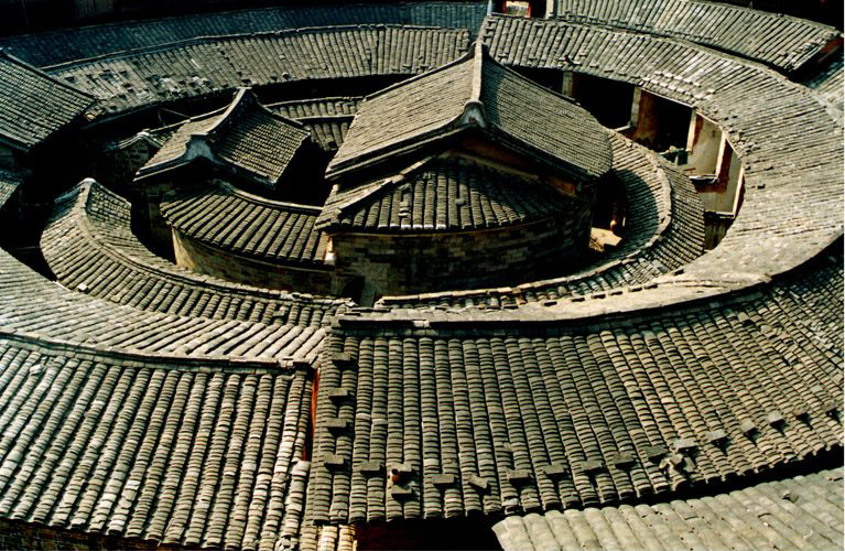 Dating back 300 years, this is the biggest round earth building in Yongding County and follows a classical design with a large central hall. Like a city with many ring roads, the four-storied Chengqi Building has four rings of 400 rooms. The population of the building once reached over 600. Nearly 100 families lived and worked together in the building and formed a history of the development of the Hakkas settlers in Yongding. This building is much admired by Chinese and foreign tourists. The entrance fee is 30 yuan. Yuchang Building - a punch-drunk building