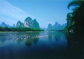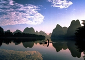 Reaching Yangshuo from Guilin is one of the great river journeys of the World. Several hours of meandering through a natural wonderland of limestone pinnacles reaching skywards make the Li River unique. Clouds seemed to hang listlessly around their summits while vegetation appears from any level surface on what are otherwise vertical slopes. Sometimes the boat rushes through narrow canyons or else floats gently on broad stretches of water.