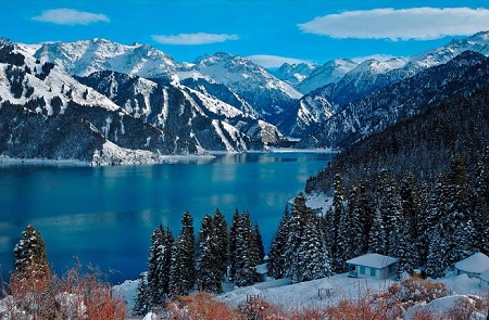 Lake of Heaven (Tianchi) is arguably one of the nicest spots in all of China. The huge clear water lake, the pine trees covering thehillsides and the snow capped mountains in the background which make this a spectacular sight- reminiscent of Switzerland or the Rocky mountains but somehow with more vibrant and colorful. This huge lake (3km long and 1km wide) sits half way (560 ft) up the mountain range and offers some excellent walking and horse riding with breathtaking views.