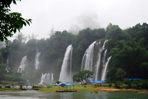 Listed in the top 5 "most beautiful waterfall in China" by China National Geography, the Detian Waterfall is over 200 meters wide and has a drop of more than 70 meters. Its water rushes down a three-tiered cliff with tremendous force. It is the largest waterfall in Asia, and the second largest transnational waterfall in the world, connecting with a waterfall in Vietnam. The fall is awe-inspiring, and its thunder is audible before it even comes into view.