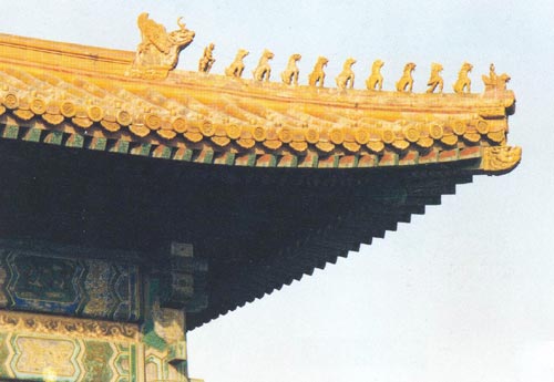 The number of zoomorphic figures engraved in the ridges of the imperial palaces was usually nine. The ridges of the Hall of Supreme Peace, however, are embossed with 10. This is the only exception to the number of zoomorphic figure in all the buildings in China - showing the uniqueness of the building. Another riddle was the number of doornails. It was an established rule to have 81 nails on every door in the imperial palace. There are usually nine rows and nine nails in every row. However, on the Donghua Gate of the Forbidden City, there were only eight rows. This is because coffins go through this gate hence the number of doornails was reduced to an even or yin number.