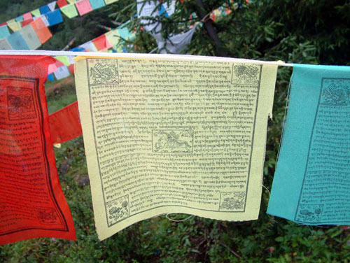 at random. When the wild wind blows, pieces or clusters of prayer flags flutter