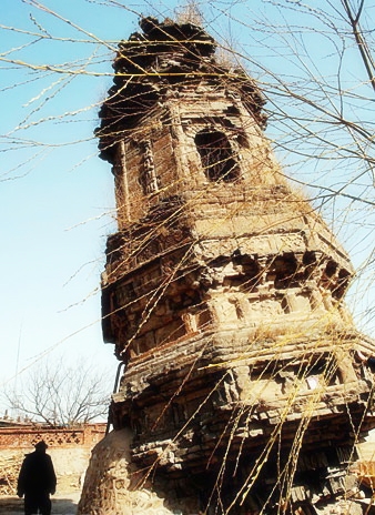 Known as the "first leaning tower of the world", Qianwei Town Leaning Tower is a brick and stone-structured tower situated in Suizhong County, Liaoning Province. The 10-meter-high three-story tower was built in the ninth century. Affected by the subsidence of its groundsill, the tower began to lean. About 30 years ago the gradient reached 12 degrees, twice that of the Pisa Leaning Tower.