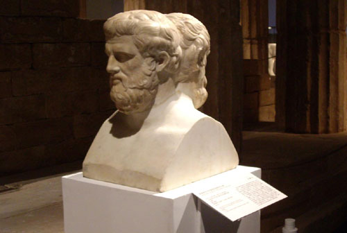 Double heads of Aristophanes and Sophoclean.