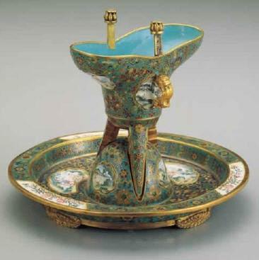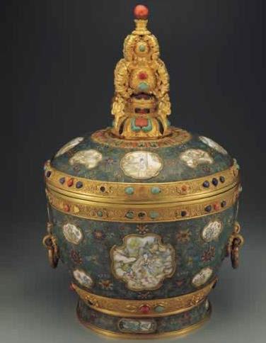 Specification: 66 centimeters in height This butter tea-pot of the royal family, weighing more than 20 kilograms, is just for decorative purposes. 6. Wire inlayed cloisonné enamel Jue