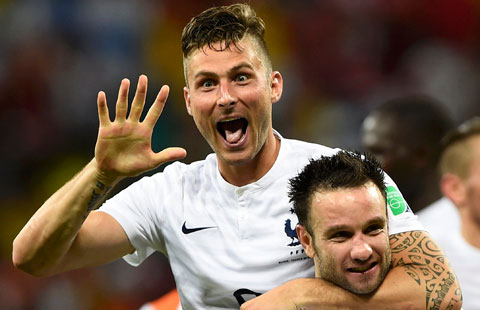 Forwards Olivier Giroud and Karim Benzema each scored one goal and created another as a rampant France blew away Switzerland 5-2 Friday to take control of Group E and all but seal a place in the next round.