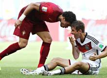 Thomas Müller’s hat-trick and Pepe’s petulance sink bedraggled Portugal.