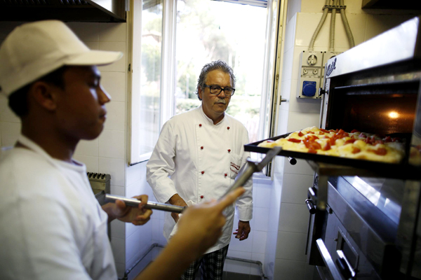 Gibranth prepares a pizza in the kitchen of the "Master Pizzaioli" school where he studies to be a pizza chef in Rome June 27, 2013. [Photo/Agencies]