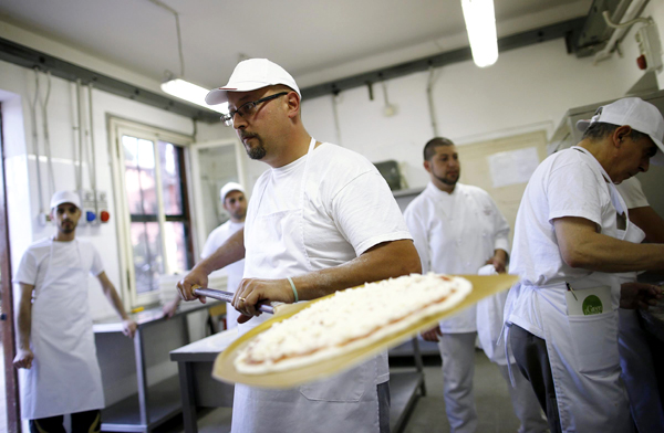 A pizza chef-in-training student from the "Master Pizzaioli" school prepares a pizza in Rome June 27, 2013. [Photo/Agencies] |