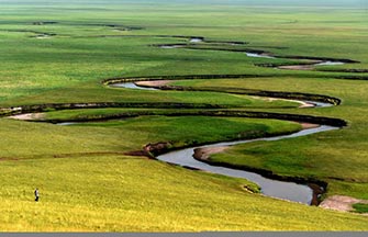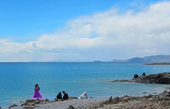 An outdoor deck stretches along small lake full of lotus, creating a picnic-like ambience. Bruno Maestrini/China Daily