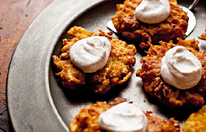 Apple-potato latkes with cinnamon sour cream