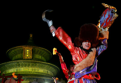 Chinese dancers perform during the "Beijing's Night" ceremony for the Fortune Global Forum in Beijing May 17, 2005. [Reuters]