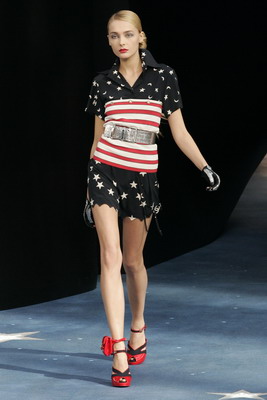 A model presents a creation by German designer Karl Lagerfeld for fashion house Chanel as part of his Spring-Summer 2008 ready-to-wear fashion collection in Paris October 5, 2007. [Agencies]