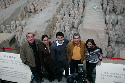 Updated: 2007-10-24 15:04 ![]() Costa Rica president Oscar Arias (2nd from the right) and his family pay a visit to the Terracotta Warriors in Xi'an, Northwest China's Shaanxi Province on Oct 23, 2007. [newsphoto] |