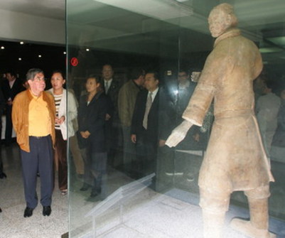 Updated: 2007-10-24 15:04 ![]() Costa Rica president Oscar Arias (1st from the left) and his family pay a visit to the Terracotta Warriors in Xi'an, Northwest China's Shaanxi Province on Oct 23, 2007. [newsphoto] |