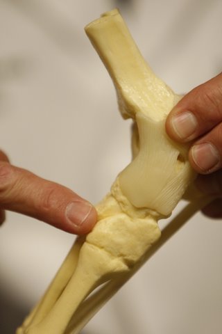 Houston Rockets team doctor Tom Clanton explains star center Yao Ming's affected part by pointing to a foot and ankle model at a press conference announcing Yao would not play for the rest of the NBA basketball season due to a stress fracture in his left foot Tuesday, Feb. 26, 2008 in Houston. [Sina]