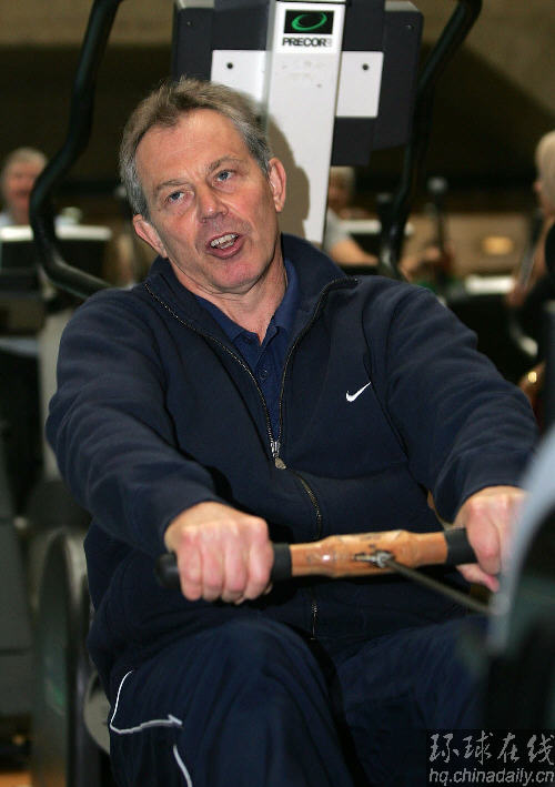 一襲深藍色的運動衣令布萊爾看起來年輕了不少,白色的運動鞋也使他動感十足。當天,為推廣政府發起的名為“小改變,大不同”的健康宣傳活動,布萊爾親自出馬,并特意在公眾面前進行各種健身運動。例如,在跑步機上跑步和舉杠鈴等等,而且,他還不時地停下來擺出姿勢讓記者拍照。