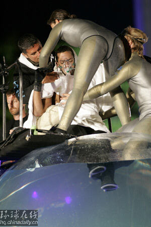 環(huán)球在線消息:據(jù)報(bào)道,5月8日,在現(xiàn)場直播的《大衛(wèi)·布賴恩:活活淹死》節(jié)目中,布賴恩成功結(jié)束了8天7夜的水缸生活,但在最后關(guān)頭他試圖沖擊8分58秒世界憋氣紀(jì)錄卻以失敗告終,并差點(diǎn)真的“活活淹死”。但僅6周后,元?dú)獯髠牟假嚩饕蜒杆購氖£幱白叱觯⒚闇?zhǔn)了下一個(gè)目標(biāo)——紐約布魯克林大橋。
