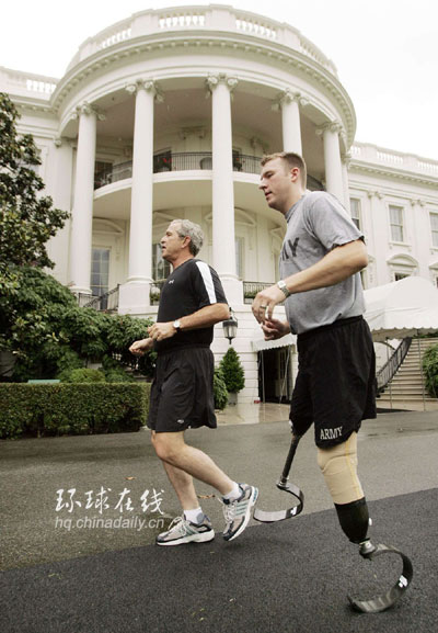 伊戰(zhàn)雙腿殘疾士兵與布什白宮慢跑(多圖)