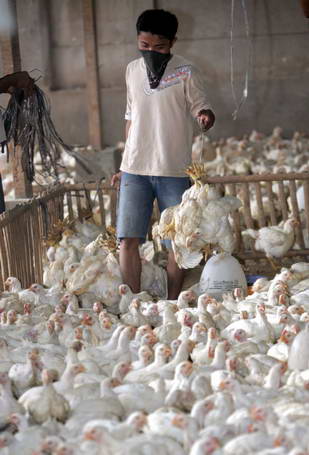 環球在線消息:7月20日,在印度尼西亞首都雅加達,一名男子準備將雞送往市場銷售。印度尼西亞衛生部官員20日證實,經世界衛生組織檢測確認,一名44歲印尼男子因感染禽流感病毒而死亡,至此印尼禽流感死亡人數已增至42人。