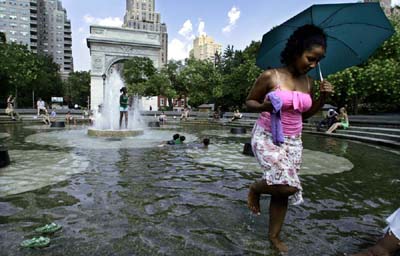 雖然人們盼望著高溫天氣早日結(jié)束,但是氣象學(xué)者預(yù)測,他們還要再和酷暑搏斗至少一天。氣象學(xué)家丹尼斯·費(fèi)爾特根表示:“紐約、費(fèi)城以及華盛頓等城市至少要到周五才會稍微涼快一些!