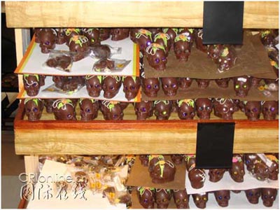 這么旺的人氣自然吸引了眾多小販把攤位擺到廣場上來,有賣骷髏頭糖、骷髏玩具的,有拿著調色板張羅著要把你化裝成鬼的,有賣印第安土著小吃的,甚至還有一個在香港中文大學念過兩年中文的墨西哥老兄在幫人寫中國名字,場面別提多熱鬧了。