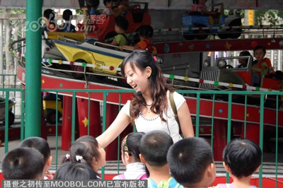 照片中,“幼教美眉”不停的注意著小朋友們的安全,同時神情并茂的向小朋友們講述在游樂園游玩小車的時候,應該怎么操作。雖然只是和一群小朋友們打交道,但是“幼教美眉”明顯傾注了自己的愛心。