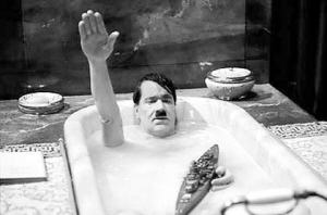 環(huán)球在線消息:今年3月的一天,柏林市中心盧斯特公園廣場上的一幕把過往行人嚇得目瞪口呆:廣場上掛滿大幅納粹旗幟,數(shù)百納粹軍人振臂高呼,而站在教堂前演講的人是希特勒!原來,這里正在拍攝德國首部以希特勒為題材的喜劇電影《我的元首:阿道夫·希特勒的真相》。目前這部電影已經(jīng)拍攝完成,預(yù)計(jì)于明年1月公映。