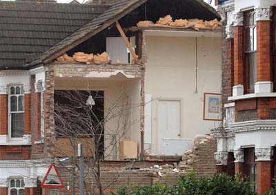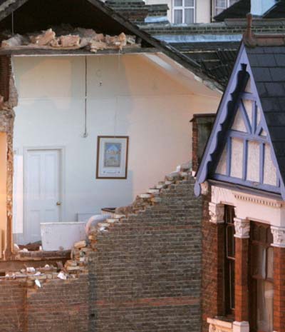 倫敦北部遭到龍卷風襲擊,這棟房屋的墻壁被吹倒。