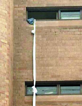 馬休用囚衣和床單做成繩子,從監獄的高墻溜了出去