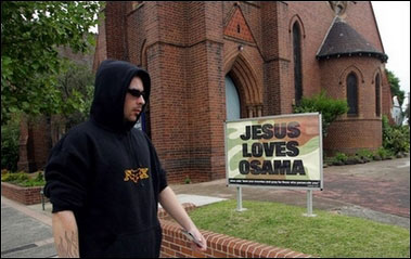 澳大利亞悉尼市的一所浸信會教堂近日貼出標語稱:“耶穌愛奧薩馬”。