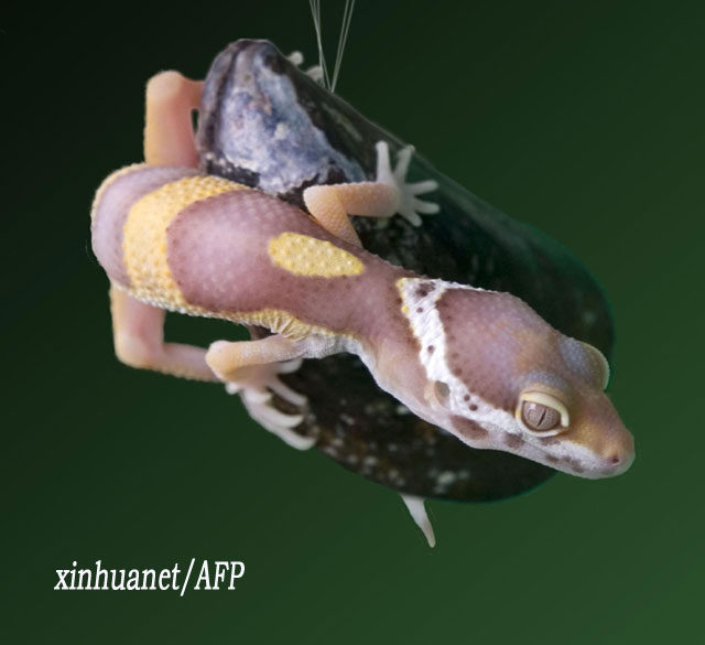 這張7月18日獲得的照片顯示的是一只壁虎。壁虎能在光滑的墻面行走自如,因此制造出像壁虎腳底一樣具有神奇黏合力的材料一直是某些專家的夙愿。7月18日出版的英國《自然》雜志說,美國研究人員仿照壁虎的腳底,把用碳納米管材料制成的毛狀物覆蓋到聚合物表面,這些毛狀物具有與壁虎腳底細毛類似的功能。最終,研究人員研制出一種柔軟的貼片,可以反復粘貼、扯下,而且其性能比壁虎腳底更勝一籌。研究人員說,這種碳納米管材料黏合時的力量是壁虎腳底的4倍。