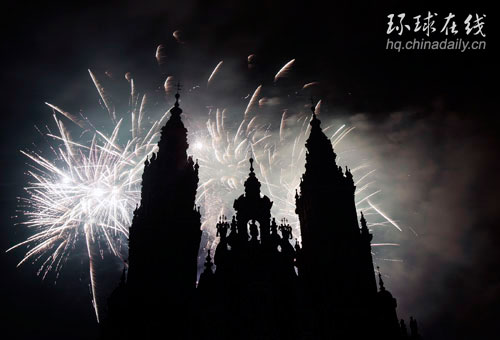 煙花照亮了夜空,古老的教堂也散發出迷人的魅力。