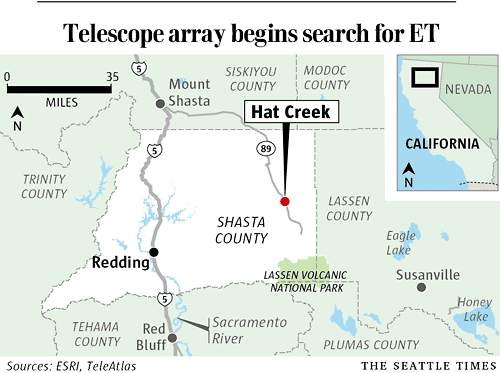| 艾倫射電望遠鏡所安置的位置。 |