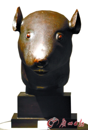 2月21日在巴黎大皇宮預展中的鼠首銅像 [圖片來源:廣州日報]