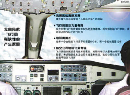 目前我國(guó)共有飛機(jī)1200架,飛行員1萬(wàn)多名。未來(lái)幾年,我國(guó)每年都要引進(jìn)150架左右的新飛機(jī),一架飛機(jī)需要10到16名飛行員,我國(guó)每年能夠培養(yǎng)出的飛行員約為600―800名。而我國(guó)對(duì)引進(jìn)外籍飛行員仍有諸多限制。據(jù)測(cè)算,未來(lái)5年,我國(guó)民航業(yè)飛行員的缺口在1000人以上。