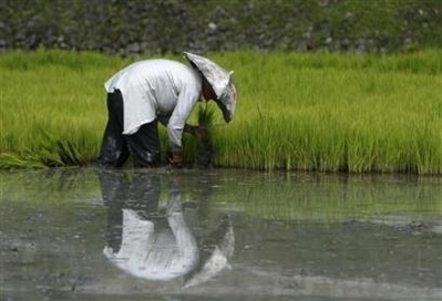| 菲律賓農(nóng)民在稻田中勞作 |