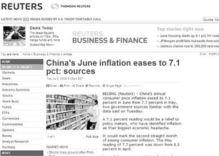外電提前報(bào)道的中國(guó)CPI數(shù)據(jù)的新聞頁(yè)面