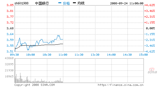 中國銀行股份有限公司(簡稱“本行”)于2008 年9 月23日接到本行控股股東中央匯金投資有限責任公司(簡稱“匯金公司”)通知,“匯金公司”通過上海證券交易所交易系統買入方式增持了本行股份。現就有關情況公告如下:
