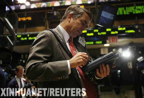 10月10日,交易員在美國紐約證券交易所工作。當日,紐約股市三大股指大幅震蕩,道瓊斯指數上下波動逾1000點。收盤時,道指和標普跌幅超過1%,連續第八天下挫,納斯達克指數微幅上揚。新華社/路透