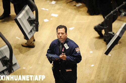 10月14日,一名交易員在美國紐約證券交易所查看股指走勢。美國政府向大型金融機構注資2500億美元的利好消息推動金融股走高,但是投資者對公司盈利能力的擔憂情緒打壓科技板塊,14日紐約股市反復震蕩,收盤時三大股指未能延續前一個交易日的漲勢而紛紛走低,納斯達克綜合指數的跌幅超過3%。新華社/法新