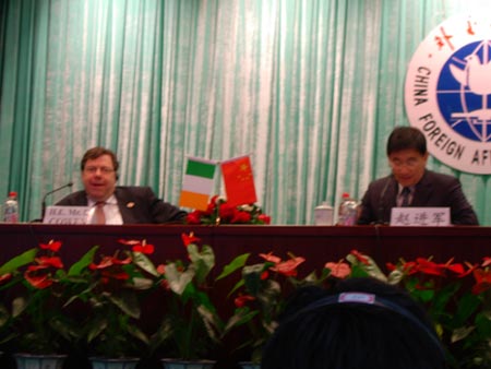 愛爾蘭總理布賴恩·科恩(左)與外交學院院長趙進軍。