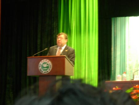 愛爾蘭總理布賴恩·科恩在發表演講。