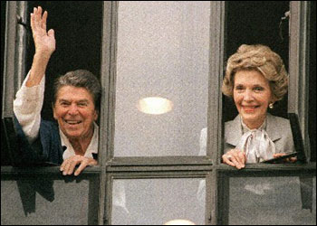 1987年1月5日,里根在接受前列腺手術后與妻子南希向公眾揮手。